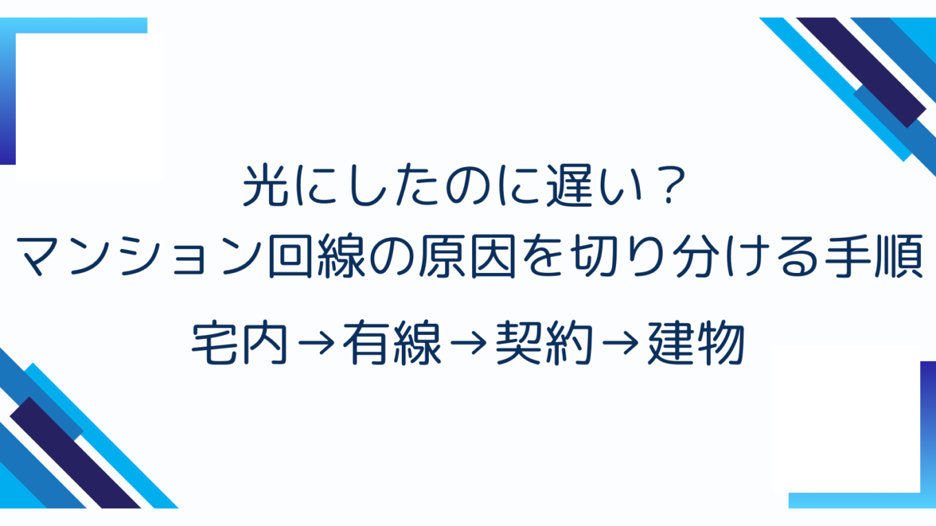 光にしたのに遅い?マンション回線の原因を切り分ける手順|宅内→有線→契約→建物