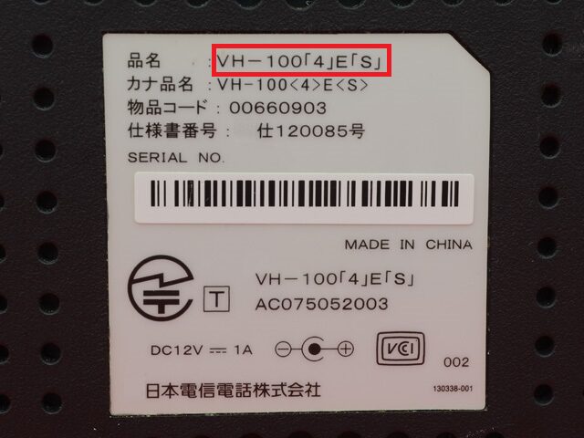 赤枠の「VH-100(4)E(S)」という型番を検索すると「VDSLモデム」と表示され、電話線を使う方式であることが確認できます。