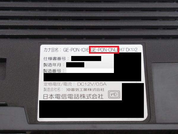 赤枠に「GE-PON-ONU」と記載されており、光ファイバーを直接部屋まで引き込む方式であることがわかります。
