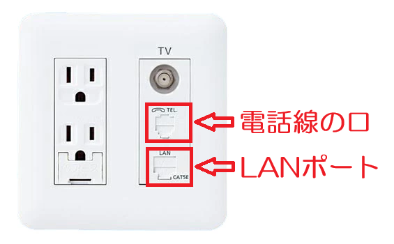 赤枠で示した TELがVDSL用の電話線の口、LANがLAN配線方式の口 です。